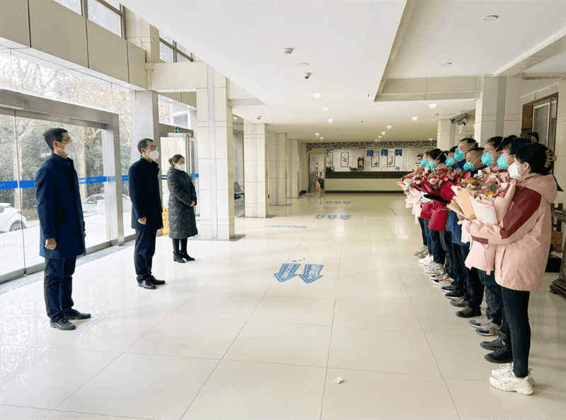 12月22日上午,延安大学咸阳医院在内科病院一楼大厅为支援方舱医疗队举行了欢迎仪式。行政副院长兼工会主席沙宁、院长助理兼护理部主任杨敏和支援方舱医疗队成员等12人参加欢迎仪式。