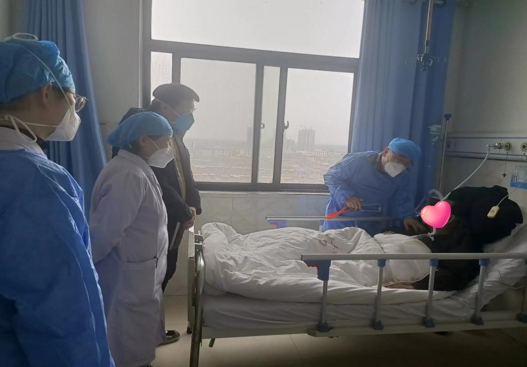 贾建厚教授在兴平市人民医院医务科科长及病区主任的陪同下分别前往呼吸内科、ICU病区进行了查房。他详细问诊、查体、仔细阅片、查看病历资料,解答问题,调整诊疗方案,指导患者用药。查房结束后,贾建厚教授解答了大家在临床诊疗工作中遇到的疑难问题,并分享了自己在新冠病毒感染患者的救治过程中积累的经验。郭花蕊护士长进行了氧气疗法、雾化吸入操作、俯卧位通气疗法的规范化指导。专家们的指导工作获得了两家医院的一致好评,进一步推动了医院医疗救治能力的提升。