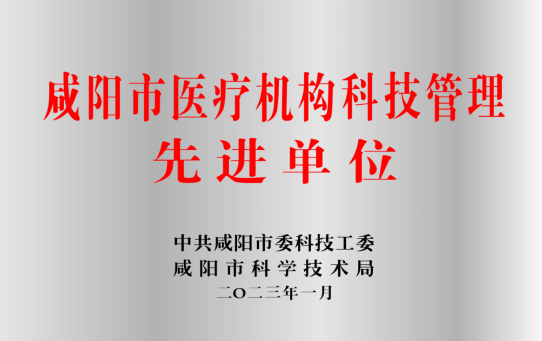 “咸阳市医疗机构科技管理先进单位”奖牌
