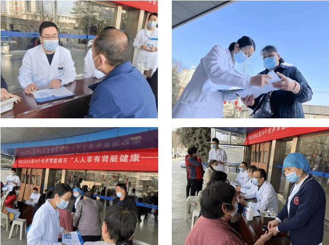 众所周知,尿毒症是一种严重危害身体健康、使人丧失劳动力甚至生命的疾病,是家庭和社会的难言之痛。尿毒症的发生是由于慢性肾脏病(CKD)没有得到及时有效的治疗,而我国慢性肾脏病的特点是发病率高,但民众的知晓率和就诊率低,因此加强民众对肾脏疾病的认知和重视非常有必要。3月9日上午,由延安大学咸阳医院肾病学科王卫军主任、涂小刚副主任医师、姚衎一医师、药学部庞洋副主任及护理人员等组成的肾脏病专家团队举行了一场大型义诊活动,为广大市民和患者普及肾脏保健和疾病防治知识。现场气氛活跃,医患互动热烈,大家积极咨询肾病相关知识及感兴趣的话题。药学部庞洋副主任为大家讲解肾脏病用药须知,提醒肾脏病患者须谨慎使用非处方药物,以免造成肾损害;护理人员为患者免费测量血压、血糖,并发放健康教育宣传册,包括肾脏病的合理用药及饮食、透析患者内瘘锻炼与保护等;肾病学科王卫军主任对前来问诊的患者进行耐心细致地解答,并开展了题为《肾病知识知多少》的科普讲座,他提醒大家:如出现排尿减少、肢体浮肿、尿性状改变、疲劳虚弱等症状提示肾脏有损害;肾脏最怕的几件事,高盐、熬夜、烟酒和感染;合理膳食和运动,控制血糖水平,严格监测血压;如果有一个或多个高危因素,应尽早检查尿液及肾功能。