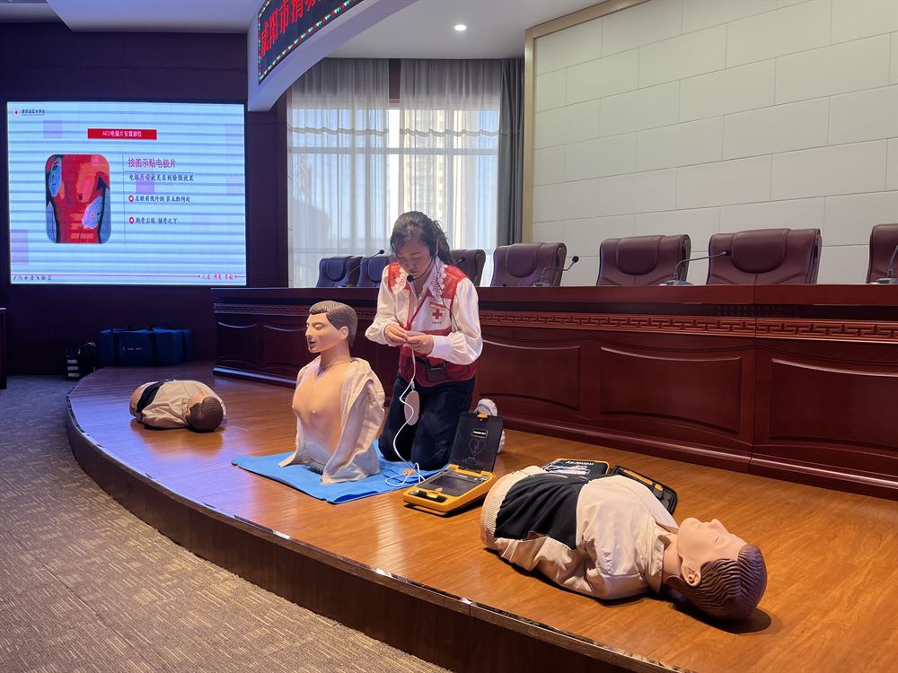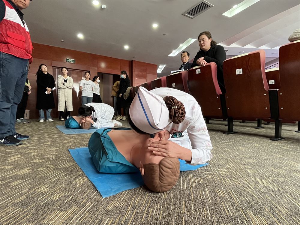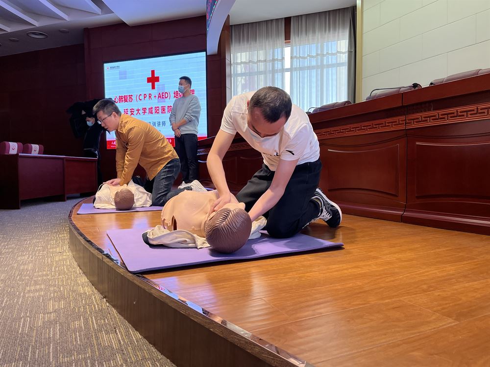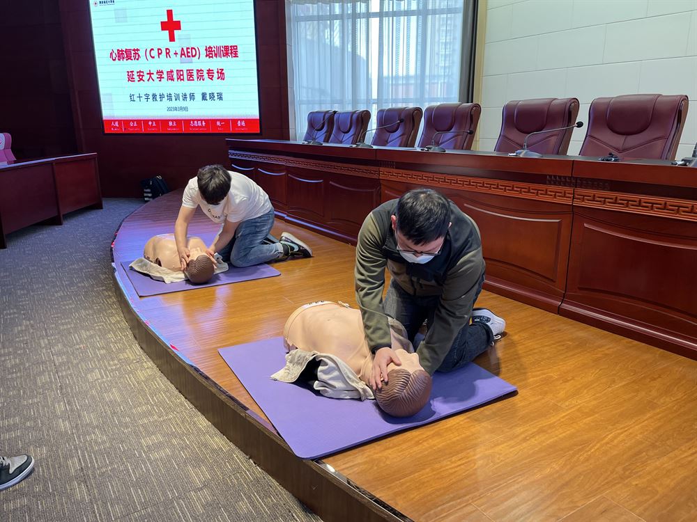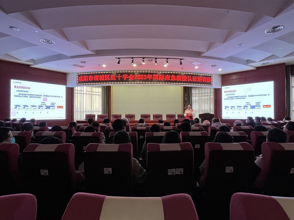 3月9日,我院为进一步增强职工的应急救护意识,提升自救互救技能,联合陕西省红十字会、咸阳市渭城区红十字会举办了“2023年国际应急救援认证培训班”,渭城区红十字会陈联盟会长参加了此次培训,本期培训班由延安大学咸阳医院宣传部部长兼流动医院院长赵莉主持,陕西省红十字救护培训讲师戴晓瑞等3名专业讲师进行现场讲解及考核,50余名医护学员现场参加了培训和考试。