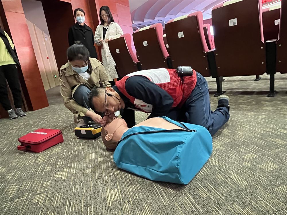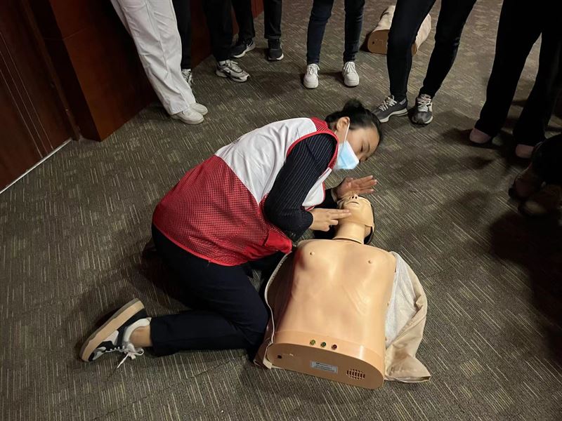 为了使学员们完全掌握急救知识要领,三位讲师亲身示范了心肺复苏(CPR+AED)操作,并以模拟人为对象,着重讲述在救助过程中需要注意的问题和可能会出现的错误点,以免对伤者造成不必要的二次伤害。通过互动教学,进一步提高了学员对急救技能的熟练程度。