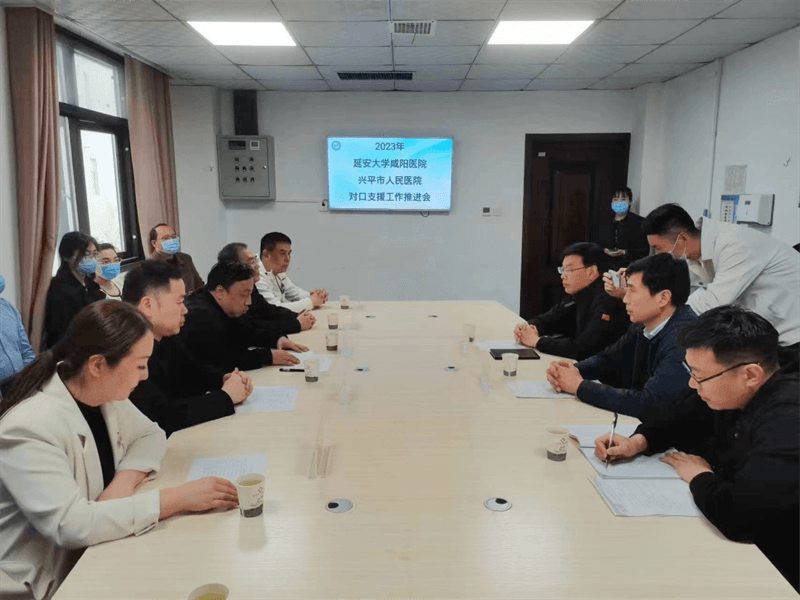 为进一步加强对口支援工作成效,继续深入贯彻落国家三级医院对口帮扶工作方案,切实提升县级医院综合服务能力,按照《咸阳市卫生健康委员会关于进一步做好2023年对口支援促进基层服务能力提升工作的通知》(咸卫函〔2023〕58号)的要求,2023年3月30日下午,由我院院长姚晓峰带队、调研员慕廷民、院长助理兼医务部部长巨涛、宣传部部长赵莉及五名新一轮对口支援专家等一行前往兴平市人民医院进行了2023年新一轮对口支援推进工作。