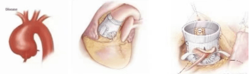 大多数主动脉瘤患者一般无症状,就诊时最常见的症状为胸闷、胸痛表现,但此病有非常严重的并发症,如主动脉破裂、主动脉夹层动脉瘤的形成,随时危及生命,所以指南要求升主动脉扩张大于5.5cm时需限期手术。主动脉根部瘤常引起主动脉瓣关闭不全或狭窄,可致心绞痛,甚至心力衰竭,若合并有主动脉瓣关闭不全时,患者症状往往较重,故需行同期行主动脉瓣膜手术;选择哪种手术方式合适,主要看患者的主动脉窦部、升主动脉及瓣膜病情严重程度情况而定,此患者的瓣膜返流多考虑窦部明显扩张所致,其瓣叶质量良好,故选择对患者远期效果好、花费低的David手术较为理想,且避免长期服用抗凝药物所带来的风险。