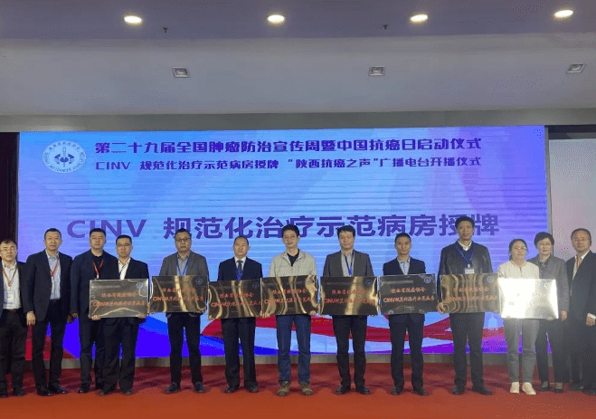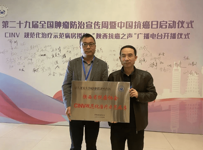 2023年4月15日,在第29届全国肿瘤防治宣传周暨中国抗癌日启动仪式上,我院成为陕西省抗癌协会第一批“CINV规范化治疗示范病房”授牌单位,内科病院副院长张玉河参加本次授牌仪式。此次授牌标志着我院肿瘤治疗已进入人性化、个体化、规范化阶段,我院也将以此次授牌为契机,大力推进肿瘤学科的全面快速发展。