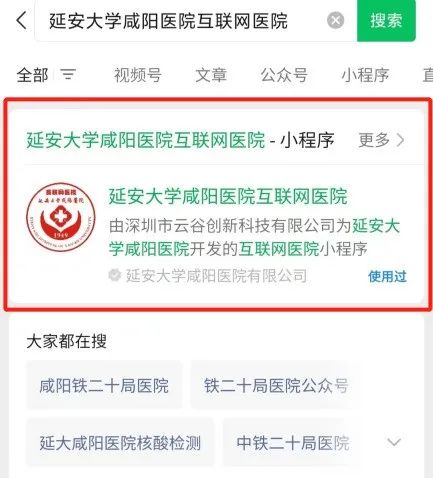 微信搜索延安大学咸阳医院互联医院,点击即可进入