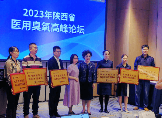 2023年5月28日,由中南大学医用臭氧研究中心主办的“2023年陕西省医用臭氧高峰论坛”在陕西省西安市浐灞喜来登酒店顺利召开,新疆医科大学附属中心医院的刘红霞教授、中南大学湘雅三医院的鲁建云教授、汉中市铁路中心医院的陈少宁教授等多位皮肤科大咖受邀参加并进行经验分享。由刘红霞教授和鲁建云教授为陕西省的七家医院进行授牌,我院皮肤科为咸阳市唯一一家被授予“医用臭氧临床培训示范基地”的单位。