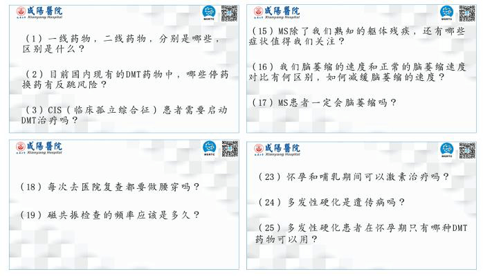 紧接着,延安大学咸阳医院神经内科十五病区张国勋副主任、王红梅护士长分别为我们做了MS治疗和MS症状管理的科普。