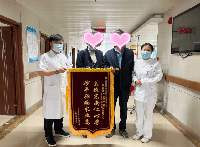 近日,出院一个月的李大爷及家属来院复诊,并且亲手送上了一面鲜红的锦旗:“医德高尚仁心厚、妙手驱病术业高”以表感激之情。