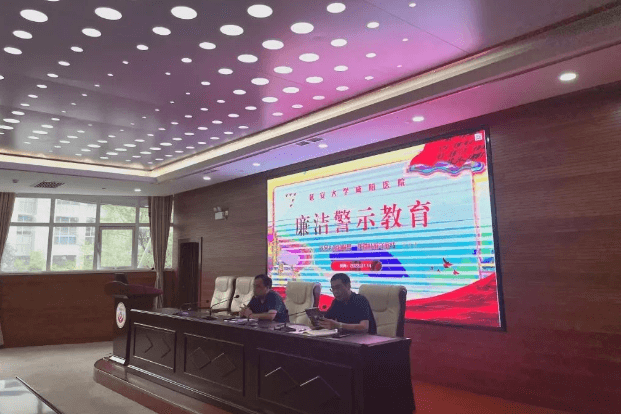 会议组织观看了《背离初心的国企蛀虫》警示教育片。院长姚晓峰同志强调要统筹推进清廉医院建设及行业作风专项整治活动,大力解决党风、行风方面出现的突出问题。行政副院长沙宁同志要求全院干部职工要加强理想信念教育、警示教育、纪律教育,切实引导党员干部职工知敬畏、存戒惧、守底线。