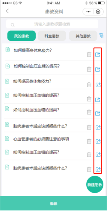 管理灵活性强,科室可根据随访需求自行设计问卷内容,并按照诊断标签批量对住院及出院患者发送调查问卷,如:高血压监测随访问卷、脑神经治疗随访问卷、新生婴儿随访问卷、产后随访问卷、出院满意度等。此外,系统也可根据诊断标签精准批量完成对患者的健康宣教。
