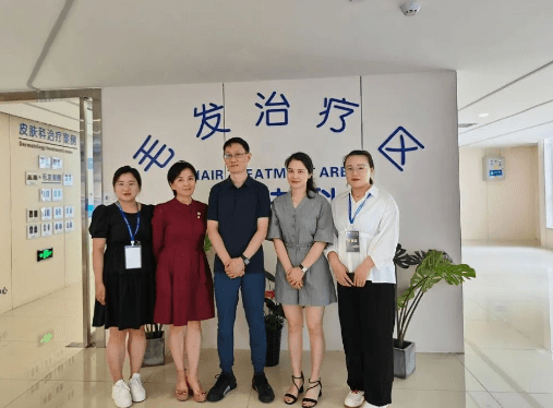2023年8月4日,中西医结合学会毛发医学巡讲期间,上海交通大学医学院附属第九人民医院刘清教授、同济大学附属东方医院李宇飞教授、北京同仁医院魏爱华教授、重庆医科大学第二附属医院赵恒光教授、贵州省人民医院江蕾微教授等,在陈小艳主任的带领下参观了我院皮肤科。陈主任及全体皮肤科医护人员对几位专家的到来表示热烈欢迎,一同带领各位专家参观了科室毛发治疗区、中医治疗区、激光面部治疗区及皮肤科门诊手术室等。期间陈小艳主任讲述了皮肤科的发展历程,将科室在建设过程中曾经踩过的坑、走过的弯路以及发展思路、先进的管理模式等经验都向参观人员进行了生动的讲解。各位教授还就科室管理、基础设施建设、特色学科培育、医疗水平提升、科室品牌建设等方面进行了深入探讨,并且交流了前沿的治疗手段和典型案例,现场气氛十分热烈。