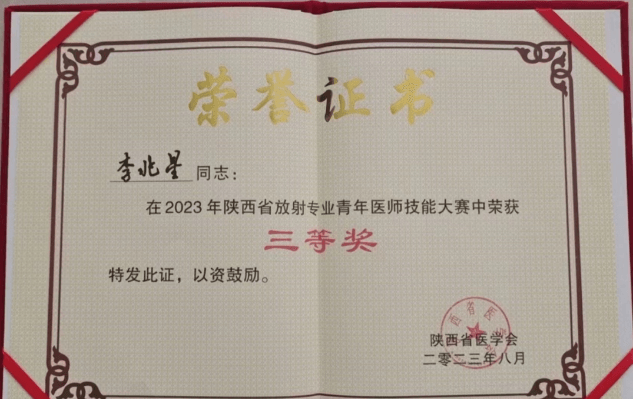 8月4日-6日,陕西省医学会放射学分会2023年学术年会在西安召开。大会举办了首届放射专业青年医师技能大赛,在初赛中来自全省的40支队伍展开激烈比拼,最终有10支队伍闯进决赛,延安大学咸阳医院CT/磁共振室卓越队在刘连锋主任的带领下,一路过关斩将,最终以优异的成绩荣获本次大赛三等奖。
