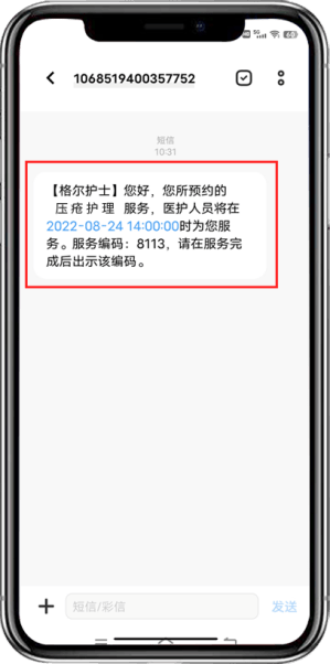 第七步:收到确认短信后即可等待护士上门