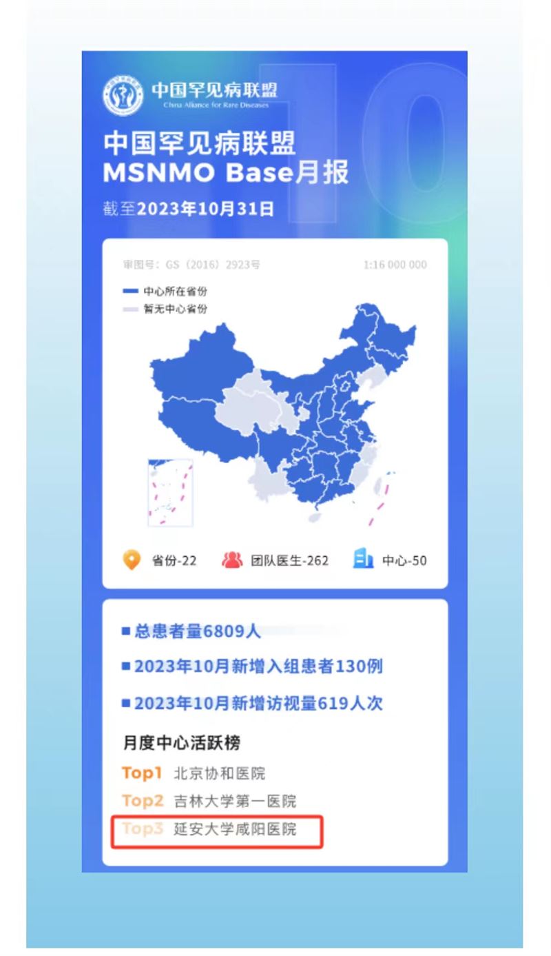 近日从中国罕见病联盟月报中获悉,延安大学咸阳医院在月度中心活跃榜中位居第三。