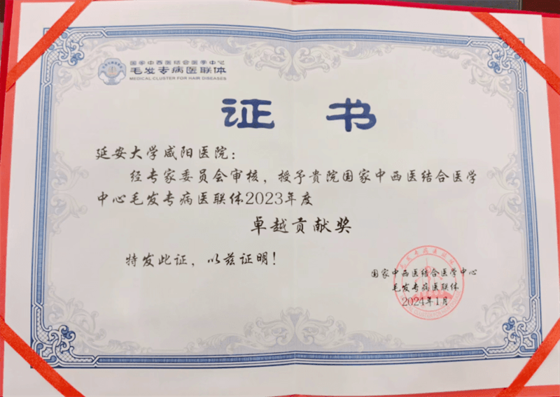 我院皮肤科毛发专诊已开展八年,在陈小艳主任的带领下,一直坚持钻研创新,将其建设成为西北地区规模较大的三甲医院毛发专诊,并获得“咸阳市2020年脱发性疾病综合诊疗技术科技创新团队”,先后成为“国家卫生健康委·中日友好医院毛发专病医联体单位”、“中国西部毛发医学专病联盟委员单位”、“喜美恩头皮项目临床培训示范基地”、“妮雀娜Nutralla脱发物理治疗临床培训示范基地”、“发云康数字植发系统临床培训示范基地”、“医用臭氧外治临床培训示范基地”。我科采用集头皮医学养护、头皮疾病诊疗、非手术生发治疗、植发于一体的一站式毛发诊疗体系,针对雄激素性脱发、女性型脱发、产后脱发、休止期脱发、斑秃等各种毛发疾病制定了个体化诊疗方案,中西结合,获得了广大患者的信赖和认可,并取得全国知名度。