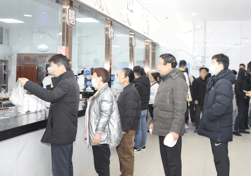 凌晨4:00,当大多数人还在甜美的梦乡中时,医院餐厅的工作人员已经忙碌起来,他们正在为在院的2000多名患者和医护人员准备新年第一餐。6:30,营养餐厅已经排起了队,患者及家属纷纷带着餐具和医院发放的免费餐券来到窗口领取饺子。