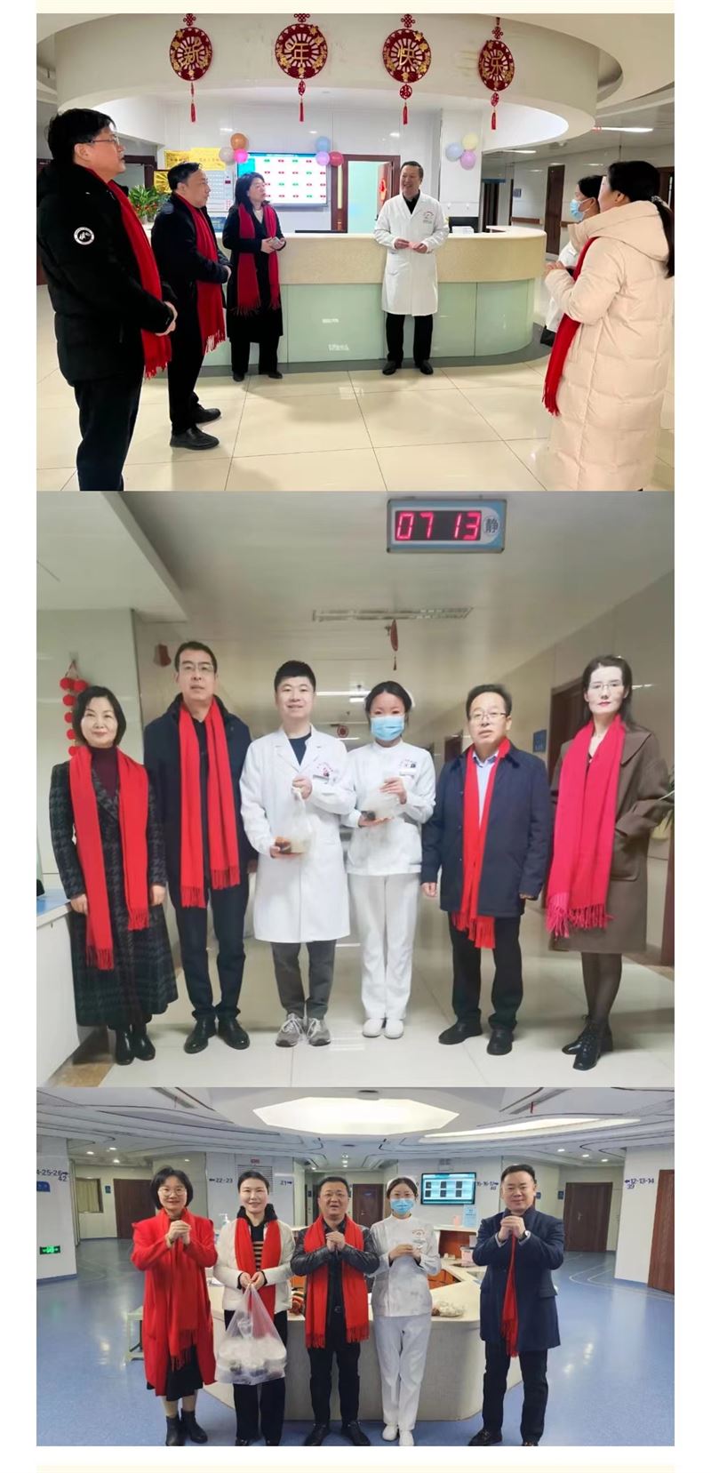 “新年快乐!”“大家辛苦了!”在给大家送上新年祝福的同时,院领导向坚守一线的医护人员表示感谢,并嘱托大家一定抓好质量和安全,为患者做好诊疗服务。医护人员纷纷表示,“请领导放心,我们一定不辱使命”。