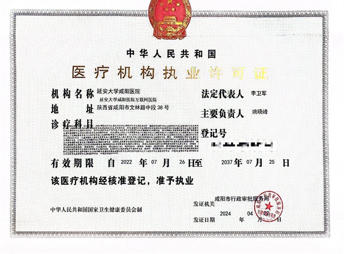 为深入贯彻落实习近平新时代中国特色社会主义思想和党的十九大精神,推进实施健康中国战略,根据《“健康中国2030”规划纲要》等文件精神,延安大学咸阳医院启动互联网医院筹备建设工作。2023年11月经陕西省卫生健康委互联网医疗监管平台接入审核批准,2024年4月22日,由咸阳市行政审批局审批通过,延安大学咸阳医院正式获批互联网医院牌照,取得《延安大学咸阳医院互联网医院》为机构名称。