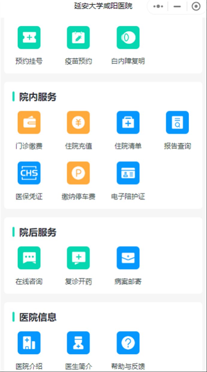 延安大学咸阳医院是本着“以患者为中心”的基本原则,让“患者少跑腿,数据多跑路”的服务理念,将从患者诊前、诊中、诊后三个维度入手,贯穿患者院内就医和院外服务的全流程。