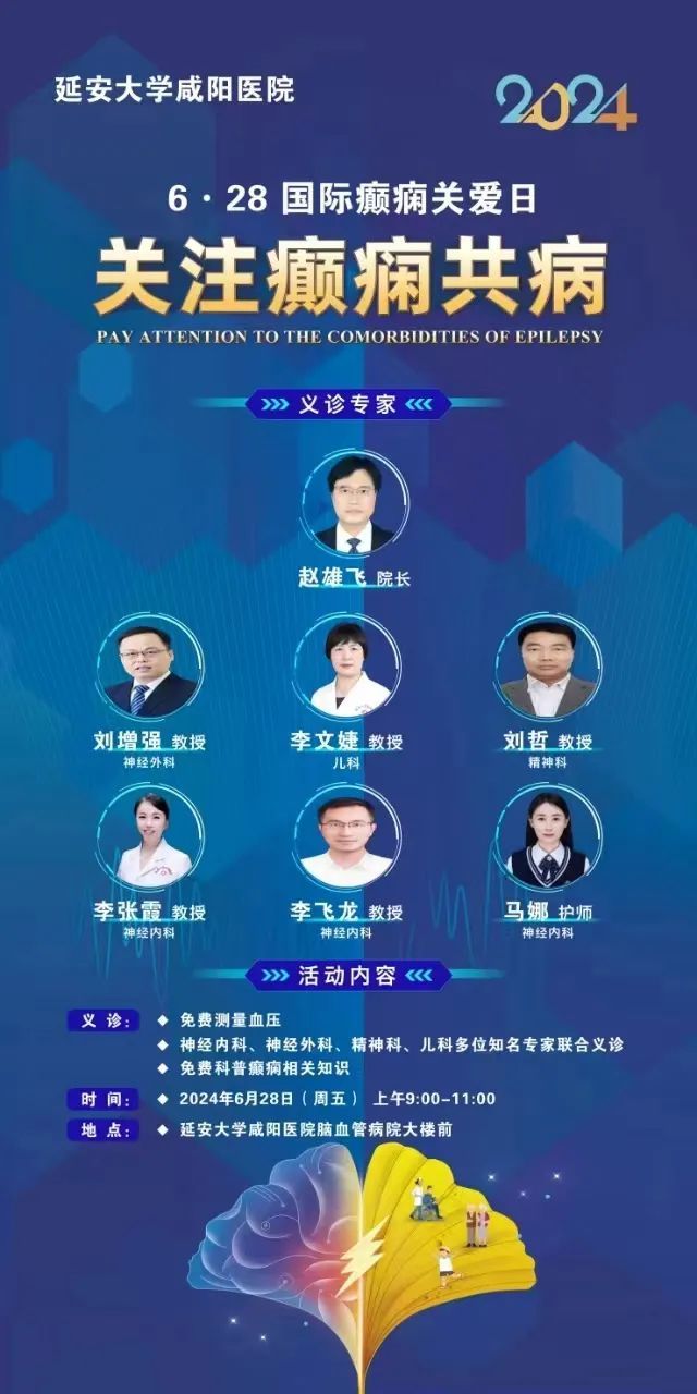 今年6月28日是“第十八个国际癫痫关爱日”,今年“关爱日”的宣传主题确定为“关注癫痫共病”。据统计,约50%的癫痫患者至少共患一种疾病,包括神经共病(偏头痛/头痛、睡眠障碍、脑卒中、痴呆等)、精神共病(抑郁障碍、焦虑障碍、躯体症状障碍、注意缺陷多动障碍、孤独症谱系障碍、双相情感障碍等)和躯体共病(心脏疾病、消化道溃疡、哮喘、高血压、慢性阻塞性肺疾病等)。癫痫患者共病率远高于一般人群,加大了患者诊断和治疗难度,增加致残率和死亡率。为提高癫痫患者对共病的认识,实现早期筛查、诊断和治疗,延安大学咸阳医院举办了一系列科普宣教活动。