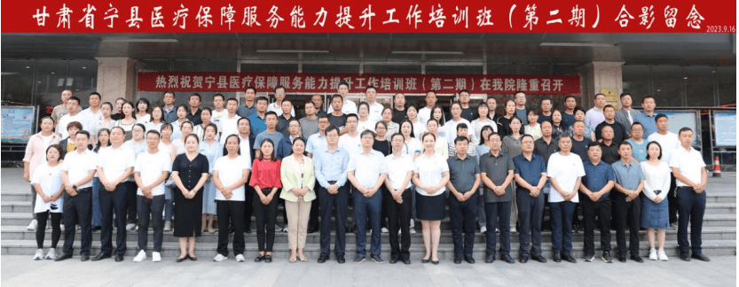 为了加强宁县医保服务团队的专业素养和工作能力,进一步提升医保服务质量,为广大患者提供更优质的医疗保障。2023年9月16—17日,甘肃省宁县医保服务能力提升培训班在延安大学咸阳医院脑血管病院第三学术厅隆重举办。本次培训班特邀了宁县医疗保障局副局长党委委员王科、医保中心副主任柴雪红、宁县人民医院党支部书记郑垚岗、宁县中医医院院长郭东明、延安大学咸阳医院院长姚晓峰、科研教学管理中心副主任陈青、宣传部部长兼流动医院院长赵莉等领导,以及宁县人民医院、宁县中医医院、宁县妇幼保健院及各基层卫生院、社区服务中心等80余人参加了此次培训班。培训办开幕式由延安大学咸阳医院副院长兼脑血管病院院长赵雄飞主持。