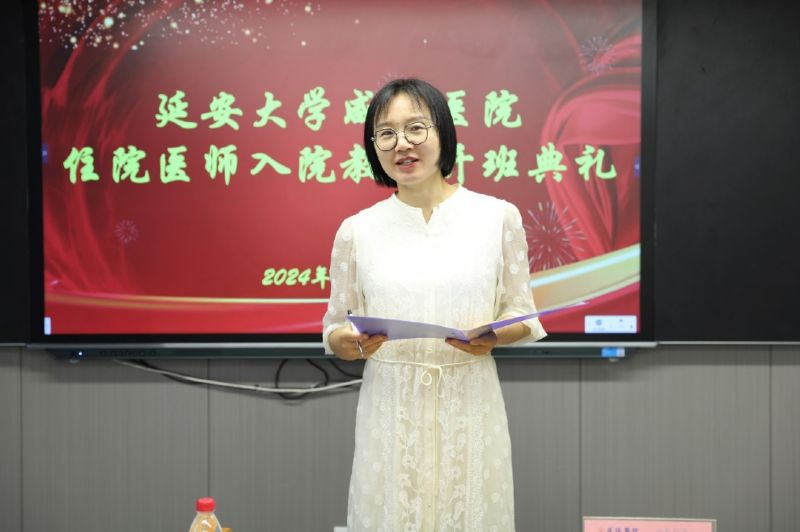 8月24日,由延安大学咸阳医院住培办公室主办的2024级住院医师规范化培训入院教育开班仪式在教学楼七楼成功举办。住院医师规范化培训作为医学教育的重要组成部分,是医学生完成院校教育后,接受以提高临床技能为主的系统化、规范化的教育阶段,是我们医学生成长为合格临床医师的必经之路。本次活动,邀请了延安大学咸阳医院内科病院院长张玉河、外科专业基地主任强永春,内科专业基地主任张荣、内科专业基地教学主任殷国庆,全科专业基地教学主任刘媛媛、神经内科专业基地教学秘书王飒出席,开班典礼由科研教学管理中心副主任陈青主持,专业基地管理人员、住培办管理人员与2024级全科、神经内科、内科、外科专业住院医师参加了此次会议。
