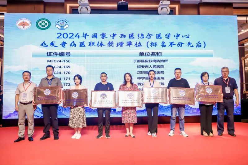 2024年9月7日-8日,陕西省皮肤外科与毛发美容学术大会暨中西医结合皮肤病诊疗提高班暨长安毛发论坛在古都西安顺利召开。我院皮肤科主任陈小艳受邀参加,作为大会联合执行主席协办会议。此次会议上,国家中西医结合医学中心毛发专病医联体为2024年新增12家医联体单位举行了授牌仪式。