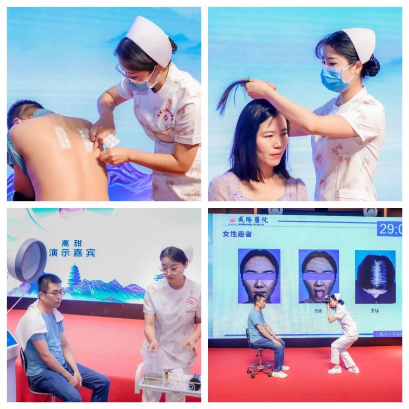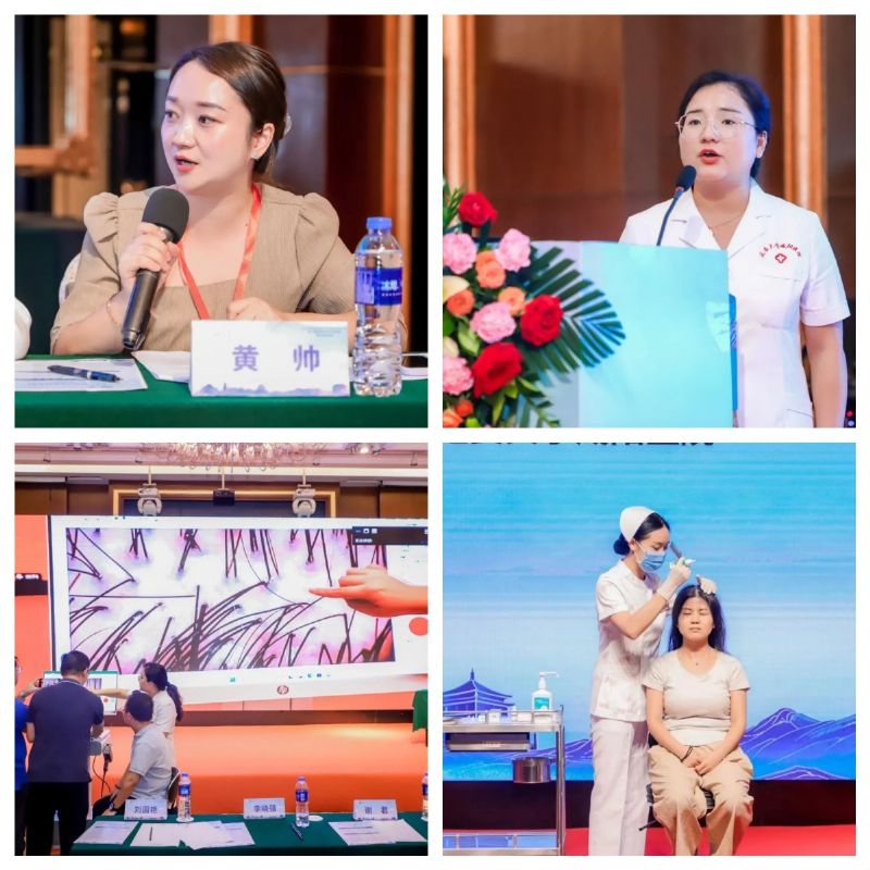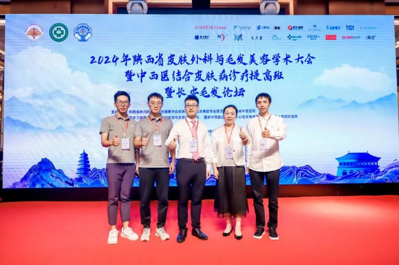 此次会议汇聚了国内外皮肤外科、毛发美容、中西医结合皮肤病诊疗领域的顶级学者及大咖,共同探讨行业前沿最新成果,推动了我国皮肤及毛发健康行业的发展,大会圆满成功。梧桐树高凤凰栖,陈小艳教授认为一个学科的发展离不开人才建设,人才战略是高于一切的战略,是学科发展的软实力及硬道理。她带领团队参加中国最高权威学术会议现场,让大家学习见识交流外科与毛发美容的最新进展及经验,也为人才梯队搭建桥梁,给团队优秀工作人员展现才华的机会。延安大学咸阳医院皮肤科陈小艳教授团队13人参加本次会议,并进行了学术汇报,掌声雷动,在9月7日下午和护士长黄帅共同主持,由皮肤科毛发团队,对“毛发患者规范拍照流程”、“毛发镜操作”、“斑贴试验(头皮)操作方法”、“头皮卸妆仪+碳酸泉水赋能仪头皮洗护”、“电子导入仪疗法操作”、“头皮复合酸治疗操作”、“头部中药熏蒸治疗操作”、“i-PRF操作”、“芙洛仑黛黑色素黑发操作”等9项毛发治疗操作进行演示汇报,各位学者深受启发和震撼,对我们的操作技术表示高度认可和肯定。