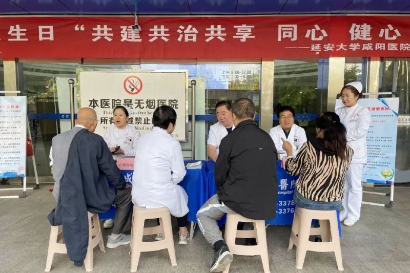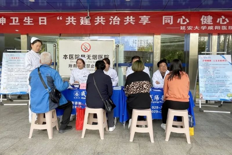 为进一步普及心理健康和精神卫生知识,倡导全社会共建心理健康体系,共治心理健康问题,共享心理健康成果,提升各行业心理健康服务水平,提高公众心理健康素养,延安大学咸阳医院精神心理病院医护团队在胡晓科副院长、尚同军主任、刘哲主任的带领下,开展以“共建共治共享,同心健心安心”为主题的义诊和健康知识科普宣讲活动。