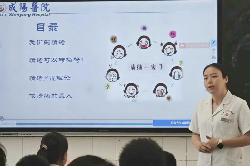 主治医生李娇及主管护师王歌于咸阳铁中开展校园健康科普“情绪管理”和“正念减压”,主讲医师用通俗易懂的语言、附议生动的案例,向学生们介绍了情绪的基本概念和知识,不少参与者表示这次讲座让他们受益匪浅,学会了更多的自我调节情绪的知识。