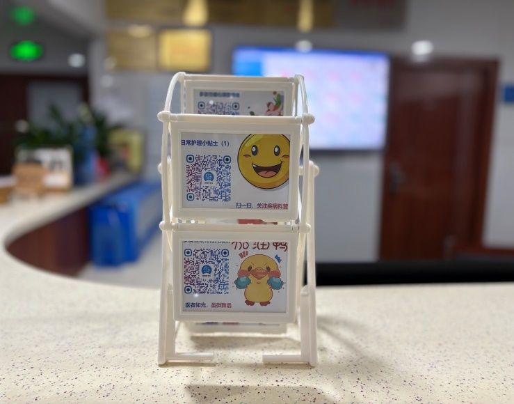 作为延安大学咸阳医院的爱心病房,温馨亮相后便引起各位专家的浓厚兴趣。病房的设计理念以患者为中心,充分考虑到患者的心理需求与生理舒适,力求通过温馨、便捷的环境改善患者的就医体验。走进病区,首先映入眼帘的是醒目的二维码展示台。患者只需轻轻一扫二维码,便能快速了解神经免疫常见疾病、药物使用、生活小贴士等相关信息,为患者提供了便捷的自助服务。此外,病区内还特别设有一个读书角,患者可以借阅图书,放松身心,减少住院期间的焦虑感。墙上挂着特色的中国地图,标记着来自全国各地患者的分布情况,展现了延安大学咸阳医院神经内科十五病区卓越的辐射能力。