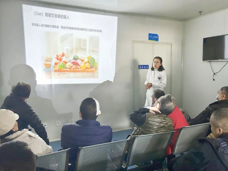 活动伊始,肾病学科主任和护士长亲自登台主持,他们那亲切的笑容和温暖的问候如同一股暖流,瞬间融化了现场的寒意,让每一位到场的患者感受到了如家人般的关爱。科室主任言辞恳切,强调了本次健康教育会的重要意义,表达了科室对患者健康的高度关注和坚定守护的决心。护士长则以她一贯的细腻和关怀,鼓励患者们积极参与,勇敢面对疾病。
