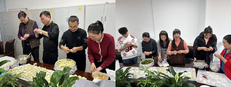 2024年12月19日下午,赵雄飞院长和张国勋主任带领科室医护人员在结束了整日繁忙工作之后,未有丝毫停歇,随即又投入到新的忙碌中,大家早早地准备好新鲜的食材和包饺子的工具。大家齐心协力,纷纷投身于这场充满爱的劳作之中,有的熟练地揉着面团、有的专注地调配着馅料、有的忘我地包着饺子。尽管他们并非职业厨师,手法略显生涩,但每一个制作步骤都洋溢着温情,每一份关怀都体现了对患者的深切关怀,传递着医护人员对患者的深情厚意与牵挂。