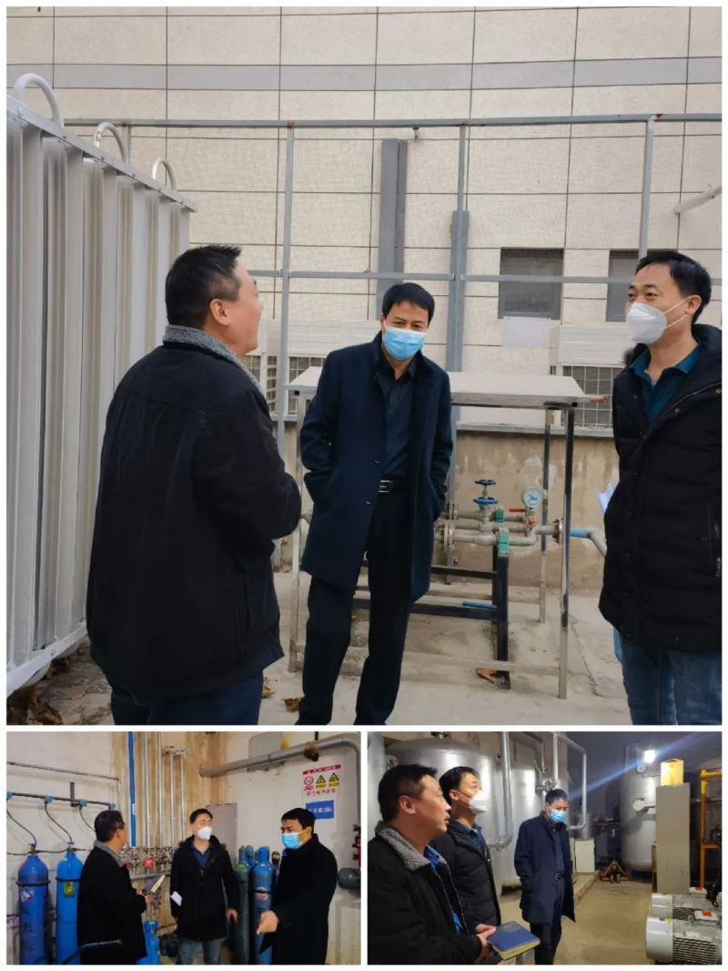 检查组人员分别深入检查了医院配电室、供暖设备机房、消防设备用房、液氧站、负压汇流排设备间、生活水泵房、药品库房、食堂餐厅、全科医学科、NICU、CCU、重症医学科、病人家属陪护区等部位。