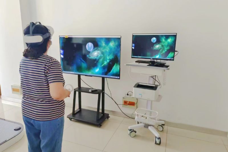 近日,延安大学咸阳医院脑血管病院眩晕门诊引进了咸阳地区首台VR前庭康复训练仪,采用虚拟现实技术使前庭康复训练的模块多样化,促进前庭平衡功能康复,可谓眩晕患者的治疗利器,也填补了我市前庭康复的技术空白。