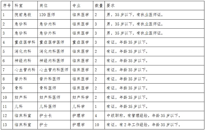 根据如皋医院业务发展需要,现需招聘: