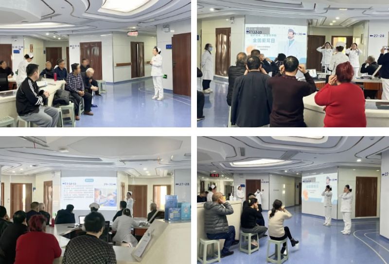 为了让爱耳知识更加深入人心,惠及更多的群众,2月27日,在耳鼻咽喉科住院部大厅举办了一场生动的“爱耳科普大讲堂”,护士长王小侠主持本次活动。孟欣慰主管护师用通俗易懂的语言介绍了耳部构造、耳聋的分类,及如何在日常生活中有效保护听力,讲座中还穿插了互动问答。最后,在赵妍主管护师和张茹护师的带领下一起学习了“耳保健操”,40余位患者及家属积极参与,气氛热烈,大家深刻认识到耳部健康对生活质量的重要性。