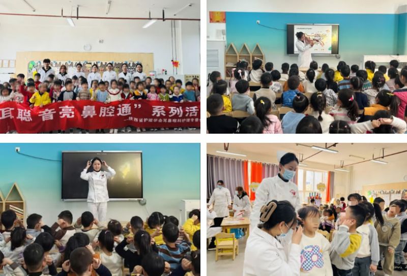 2月26日,耳鼻咽喉科冯丹医生和张茹护师赴咸阳师范幼儿园开展了一场意义非凡的“爱耳日”义诊活动,为孩子们的听力健康保驾护航。针对幼儿活泼好动、好奇心强的情况,用动画展示的形式为小朋友详细讲解了日常生活中如何保护耳朵。张茹护师现场带领大家做“耳保健操”,课堂气氛活跃,60余名师生积极参与。