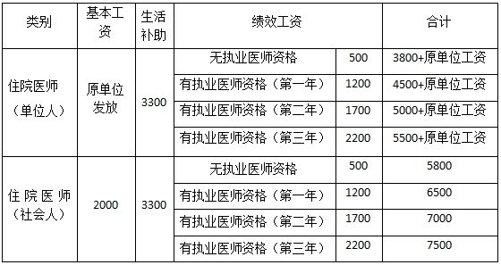 (二)在我院参加住院医师规范化培训的硕士、博士研究生(适用于在我院住培的单位人、社会人)生活补助及社会人生活补助分别为3800元/月和4300元/月。绩效工资及社会人基本工资参照以上第一、二条执行。