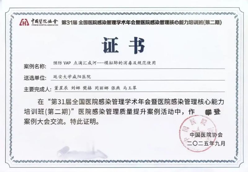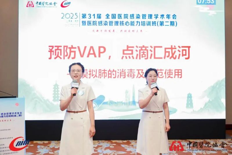 在2025年9月4日至8日于福建福州召开的第31届全国医院感染管理学术年会上,我院感控团队凭借《预防VAP点滴汇成河—模拟肺的消毒及规范使用》案例,从全国400余个参赛项目中脱颖而出,在大会汇报交流,被评为“攀登案例”。