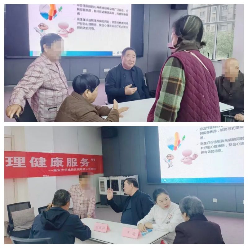 精神心理病院胡晓科副院长带领医护团队于西咸新区底张街道幸福里社区党群服务中心对前来咨询的广大群众详细地讲解了引起心理健康问题的原因、症状、预防等各类知识。
