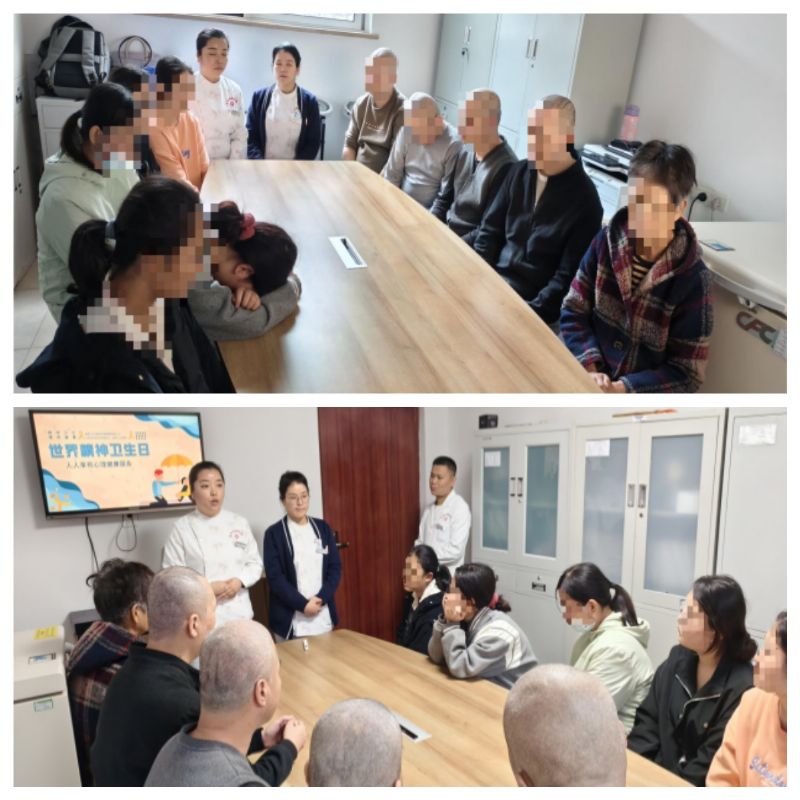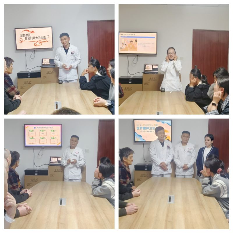 10月10日14时,精神心理病院胡晓科副院长于西咸新区底张街道幸福里社区开展社区健康科普“综合医院身心疾病诊治”,通过系统讲解、互动问答形式向广大群众、底张卫生院医护、辖区残联干事、社工、街办工作人员普及心身疾病的特征及预防知识,薛娜护士长与王歌护士带领大家一起做拍拍操,动作简单易学,通过拍打各部位促进血液循环,增强免疫力,缓解睡眠及压力。