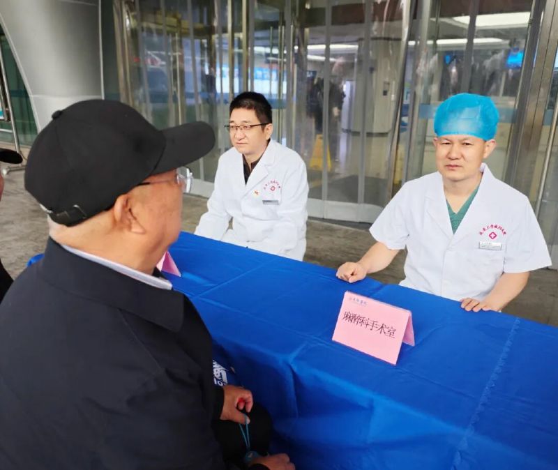 10月20日上午8:30,外科病院一楼的义诊现场已暖意涌动。咨询台刚完成搭建,等候的群众便围拢过来,有人手撑腰侧、脚步迟缓,有人轻按胸口、眉头微蹙,眼中满是对缓解疼痛的迫切期待。我院多学科专家团队带着专业设备与科普资料分工协作—一场以 “守护无痛权益” 为核心的公益义诊就此拉开序幕。