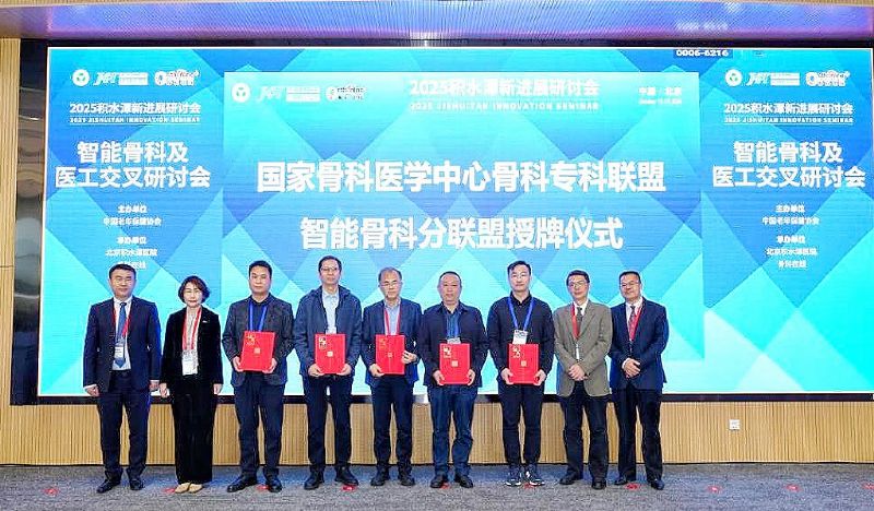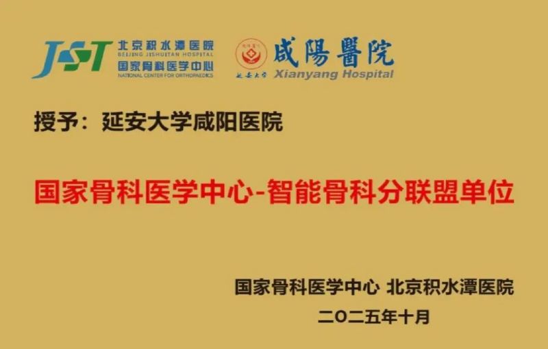 2025年10月18日,北京积水潭医院(国家骨科医学中心)正式授予延安大学咸阳医院 “国家骨科医学中心-智能骨科分联盟单位”,骨科三病区李鹏主任前往参加联盟授牌仪式。这标志着我院骨科正式迈入以数字化、精准化、微创化、人工智能为核心的智能化发展新阶段,开启智能骨科诊疗新时代。