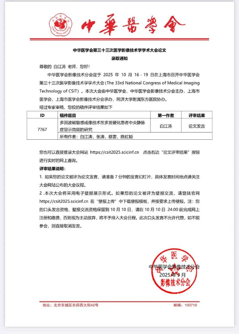 此次上海之行,不仅是对我院CT磁共振室学术成果的检阅,更是一场专业视野的升华与心灵的浸润。此次参会,是对我院既往工作的肯定,更是我们迈向新起点的契机。