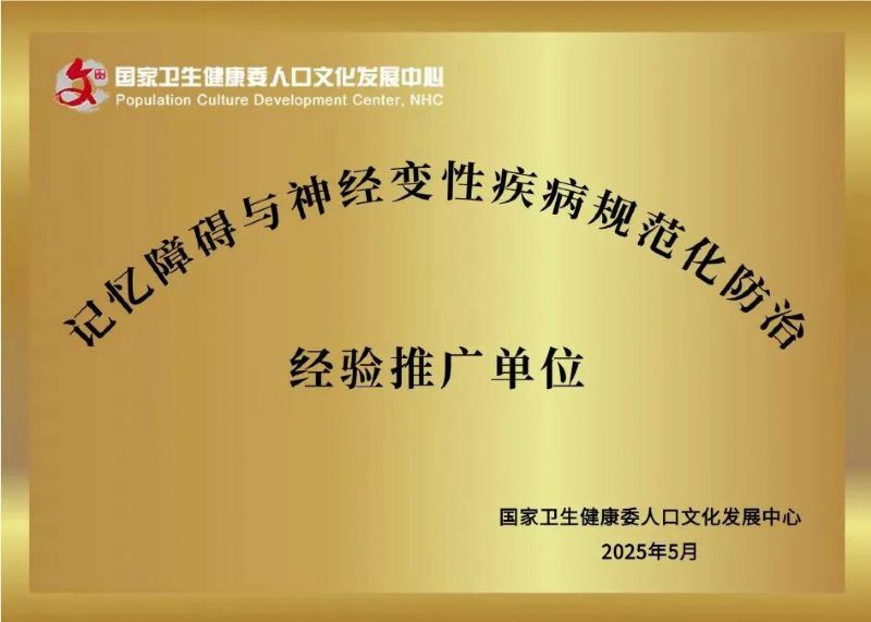 延安大学咸阳医院认知障碍专科今年再获国家级殊荣—成功斩获由国家卫生健康委人口文化发展中心授予的“记忆障碍与神经变性疾病规范化防治经验推广单位”称号。此次全国仅43家医疗机构入选,标志着医院在认知障碍领域的诊疗实力与推广能力获得国家级权威认可。