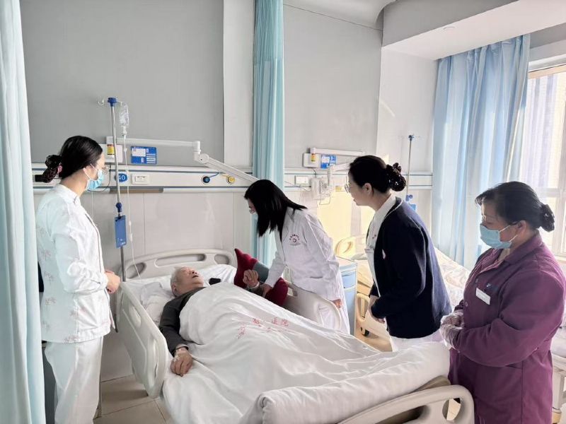 会后,专家组深入临床一线,先后来到骨科二病区、神经内科八病区、心血管内科三病区三个试点单元开展实地调研。专家们严格对照相关规范与调研要求,仔细查看了病区环境、设施配置、工作流程与信息化支持系统,现场观摩了护理员与护理团队的协同工作模式,并与住院患者、家属及一线护理员进行面对面交流,重点了解政策落地后对患者实际体验、医疗安全、护理质量及家庭负担产生的具体影响。