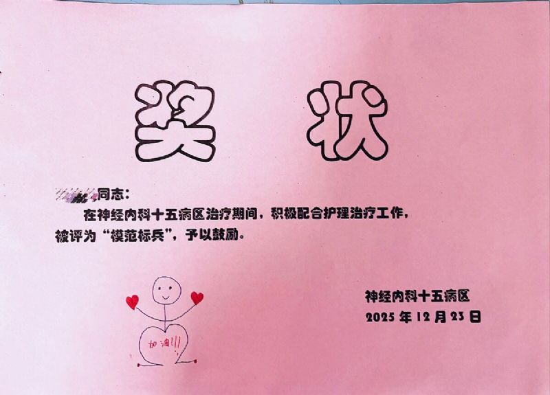 一张奖状,拉近了医护与患者的心,让“叙事护理”在温情中点燃康复信心。这背后,是医者与患者共同奔赴的希望。