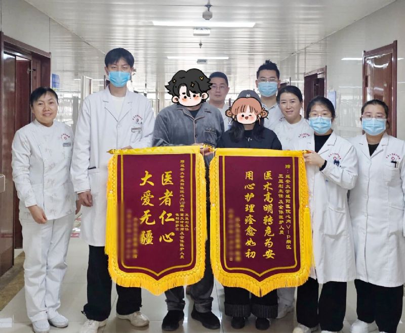 患者康复出院之际,特地送来两面锦旗。一面书写“医者仁心,大爱无疆”,真挚感念救治过程中所感受到的温暖与守护;另一面则题写“医术高明转危为安,用心护理痊愈如初”,精准概括了从危急抢救到平稳康复的全过程。这不仅是感谢,更是对团队“技术”与“仁心”最直观的见证。这两面锦旗,既是患者最质朴的谢意,也是对团队专业能力与人文精神最生动的褒奖。“转危为安”背后,是心血管团队面对急危重症时深厚的专业积淀与分秒必争的应急能力;“痊愈如初”所指向的,则是贯穿治疗全程的精细化照护与温暖陪伴。在延安大学咸阳医院,正是这种医疗技术与人文关怀的深度融合,共同守护了生命的尊严与质量,实现了真正意义上的完整治愈。